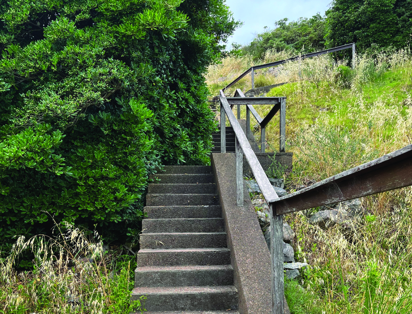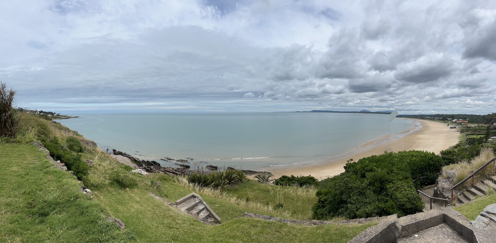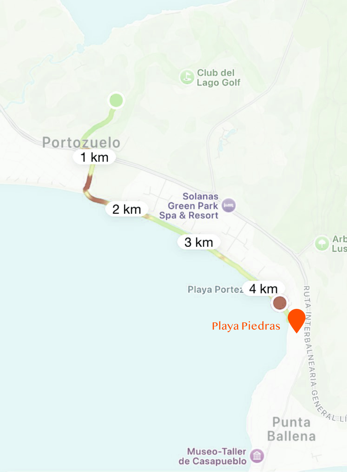 Unos pasos antes de las piedras que delimitan el final (o inicio) de la Playa Portezuelo hay una escalera de piedra, un poco escondida, y de apareciencia privada, su uso está permitido y permite ascender hasta una esplanada mirador.
