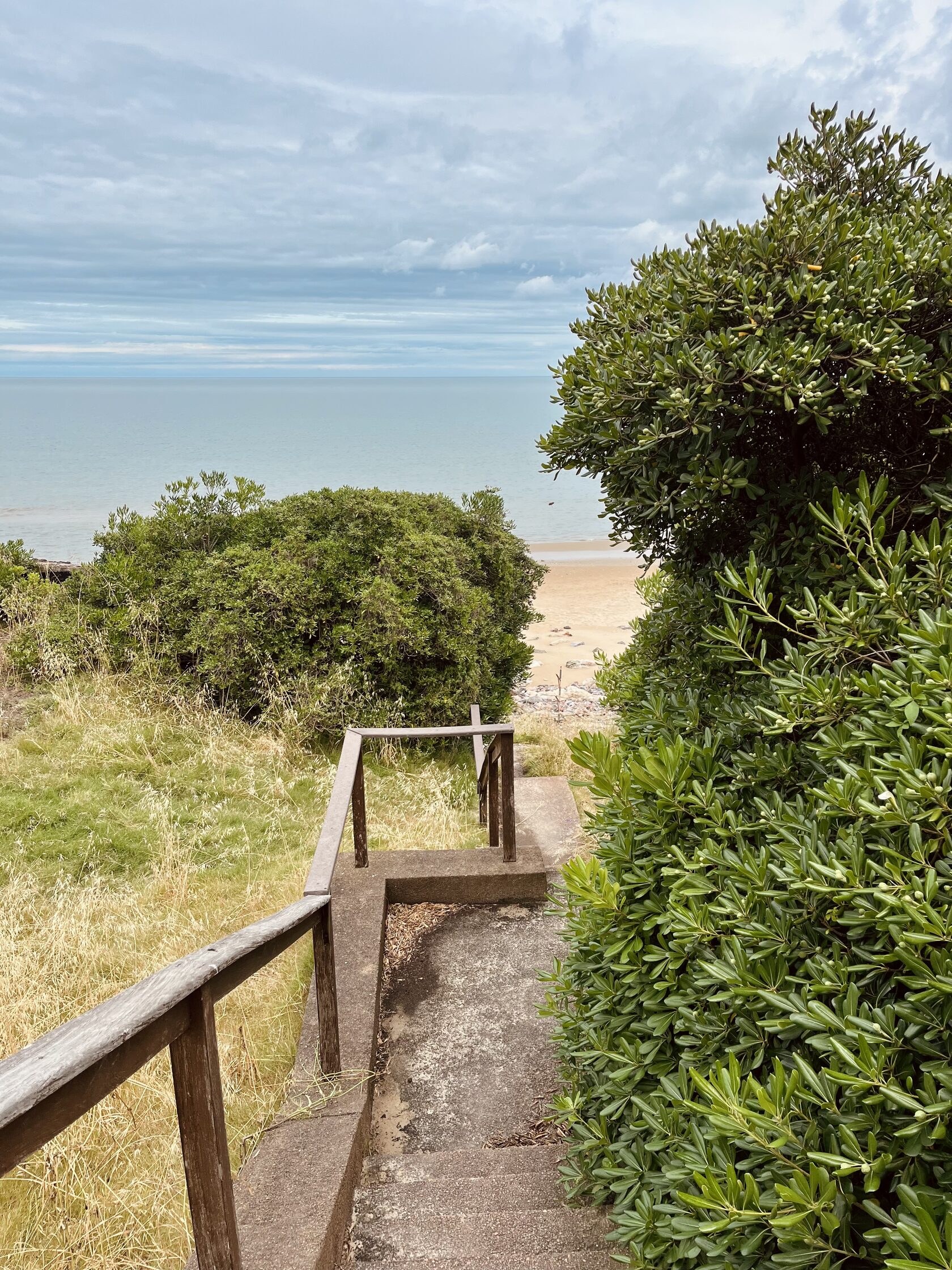 Tip: La escalera se encuentra a la izquierda de un ¨garage¨ que está sobre la playa.